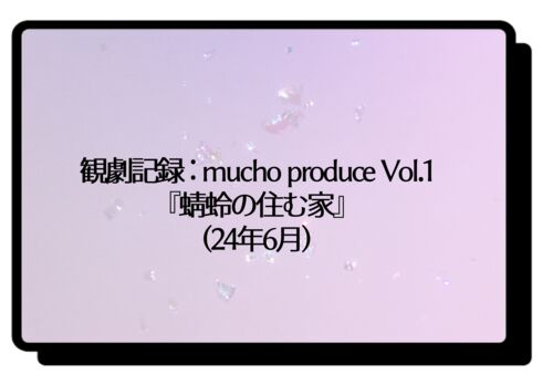 タイトル : mucho produce Vol.1『蜻蛉の住む家』 観劇回数 : 6回(本公演4回アフタートークイベント2回) 劇場 : テアトルBONBON 内容の感想 キャストの感想 村田充 永山たかし 武藤志織 山本栞 新井將 郷本直也 黒田アーサー(日替わりキャスト) 河原田拓也(…